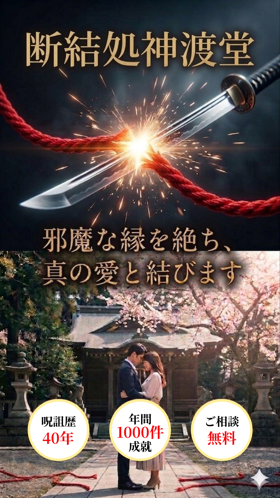 ​人生を苦しめる悪縁の鎖、叶わぬ愛の迷い。その全ては、目に見えない因果の糸が複雑に絡み合った結果です。私たち「神渡堂」は、その糸を正確に見極め、裁断し、そして強く結び直すことを使命としております。